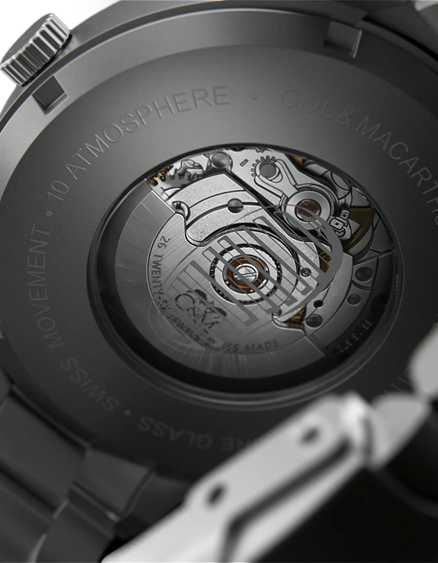 The Sellita SW200-1 Swiss mechanical movement powers the Carbon, Steel, and Titanium automatic models with exceptional precision. The Swiss quartz movement from the Normtech line, caliber 703, powers the Quartz Steel model with exceptional precision.