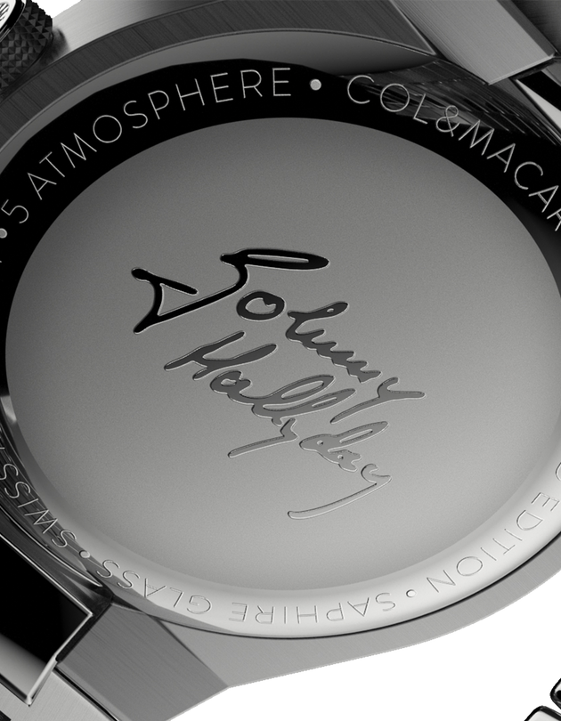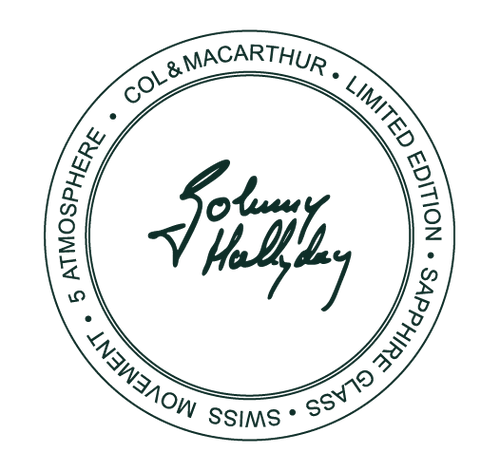 Col&McArthur collabore avec la famille Hallyday pour célébrer l’héritage de Johnny. Cette collaboration s’est concrétisée lors de l’exposition officielle « Johnny Hallyday L’Exposition » à Paris et à Bruxelles. Grâce à ce partenariat, la veste en cuir noire portée par Johnny Hallyday a été remise à Col&McArthur par la famille du chanteur en 2022. Col&McArthur a également obtenu l’autorisation d’apposer la signature officielle de Johnny au dos de chaque montre, dans le respect profond de sa mémoire.
