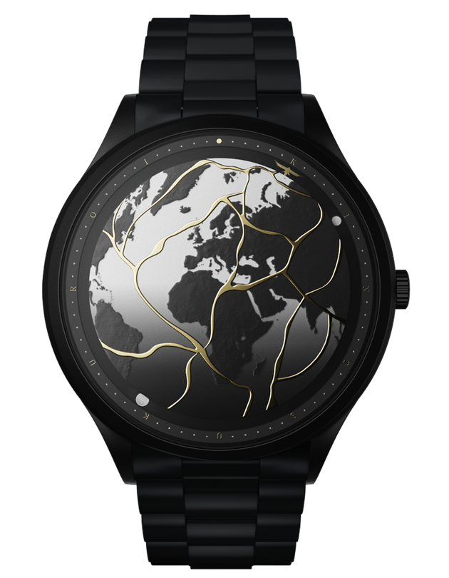 La collection Résilience 2020 s’inspire du Kintsugi, un art japonais qui consiste à réparer les objets brisés avec de l’or, révélant les cicatrices au lieu de les cacher. La montre adopte une structure inversée, où le cadran surplombe les aiguilles, comme pour sublimer une terre fracturée. La collection est limitée à 2020 exemplaires numérotés.