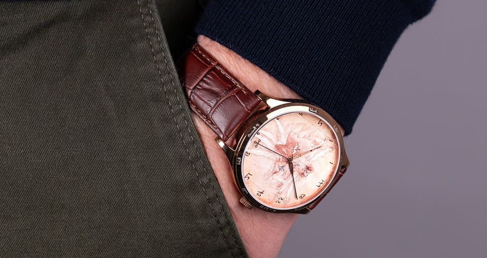 La version Automatique de la montre Leonardo Da Vinci 1519 se distingue par son fond rosé subtil, apportant une touche de chaleur et de sophistication. Fidèle à l’esprit de Da Vinci, le mouvement des aiguilles se fait dans le sens inverse des aiguilles d’une montre, en référence à l’écriture inversée de l’artiste, symbolisant sa quête constante pour repousser les limites et voir les choses sous un autre angle. La couronne est placée à gauche de la montre, un choix audacieux qui rappelle les créations uniques de Da Vinci. Un design innovant et élégant qui allie harmonieusement tradition et vision avant-gardiste.